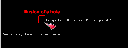 gotoxy(x,y);                      // x and y are coordinates of the hole