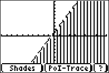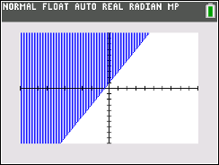 The draw back to this method is that the calculator will not distinguish between a solid line (for <) and a dotted line (for <) on the graph. All lines are solid. You will need to know, on your own, when to use solid versus dotted lines if copying this solution. |