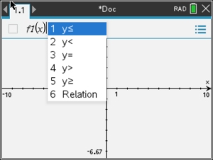 The format will now change from a "function" entry to a "relation" entry. While a function only allows an x-value to have one corresponding y-value, an inequality may have many corresponding y-values making it a "relation", but not a "function".