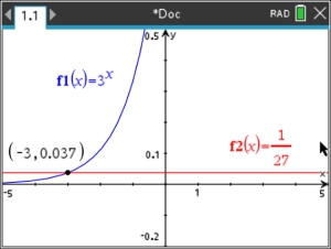 Proceed as in #2.  Adjust the window as to see the point of intersection of the two functions.