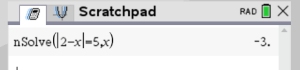 The TI-Nspire CS II non-CAS treats absolute value as a numerical piecewise function (in parts), giving one answer (which is the answer closest to the origin).