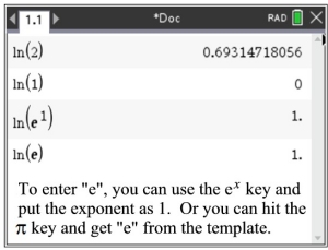 2. Evaluate: ln 2; ln 1; ln 0, ln e
